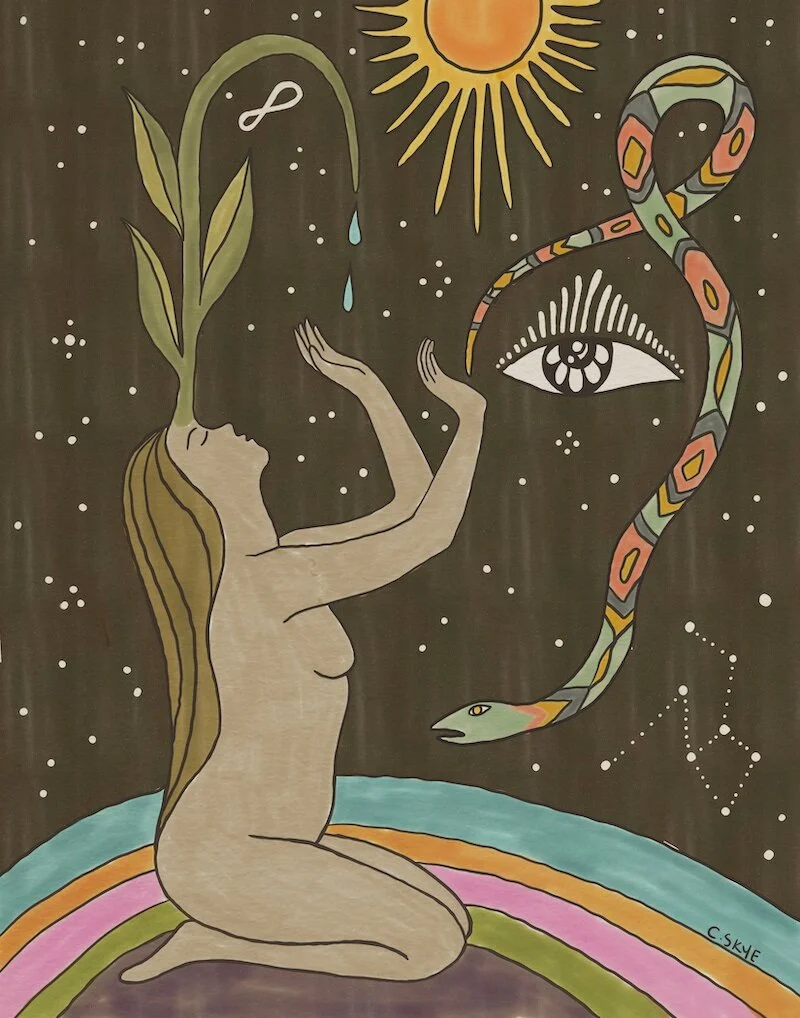 Skye's artwork is deeply rooted in her spiritual practice and her connection to nature. She believes that art can be a powerful tool for healing, transformation, and self-discovery. Her pieces are designed to transport the viewer to a realm where the boundaries between the physical and mystical dissolve.